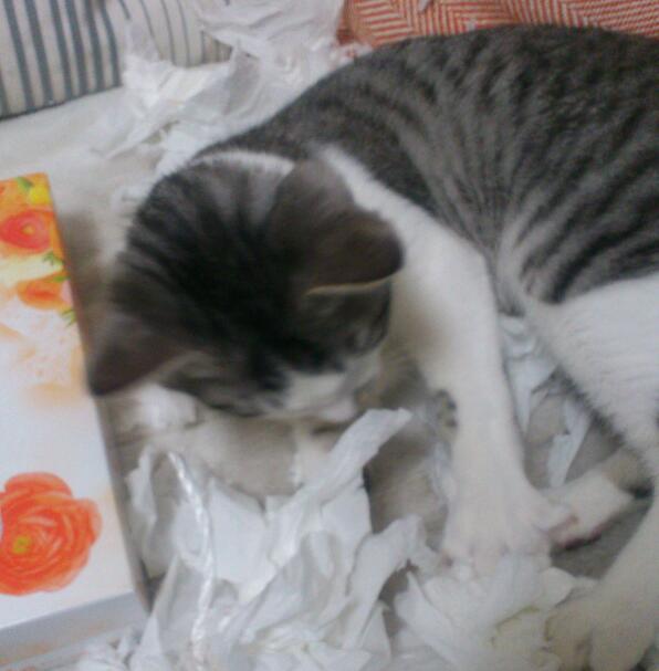 砂(ティッシュ)浴びしてるし(´・д・`)モー