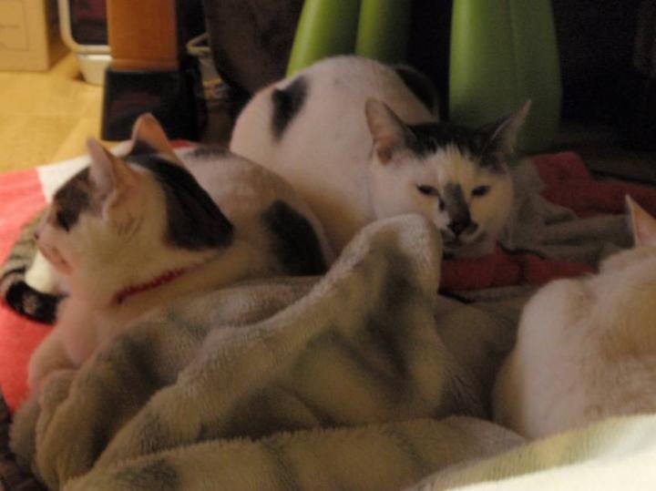ですが、最近私の足元で休むようになりましたが、触ると逃げるのでそっとしています。