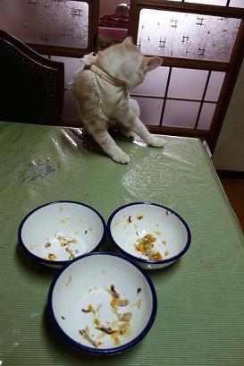 ワンコ達の器はピッカピカですが、ニャンコ達はこんな感じです!