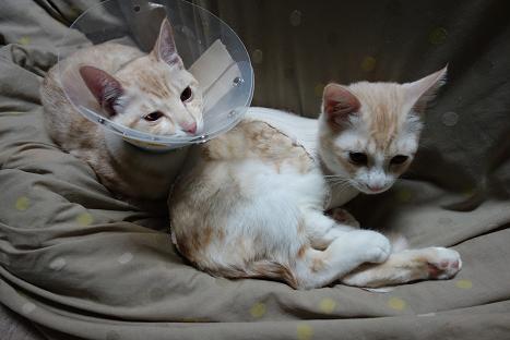 昨晩は、ミイとタマが一緒に寝てました~♪