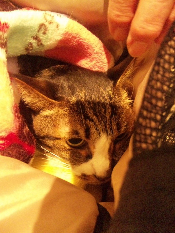 そんなゆきちゃん。せっかく慣れてきたのですが、腎臓の数値が相当悪く、機能しているのは10%未満で、クレアチニンは12、尿素窒素も10を超えていて、こうしていることが不思議なくらいだそうです。入院して静脈点滴をしても数値はあまり下がらなかったので、ゆきちゃんの性格を考えて、毎日通院することになりました。もうこれは延命治療でしかないそうです。