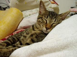「ここは、風が当たるんだにゃ~♪おやすみ」
