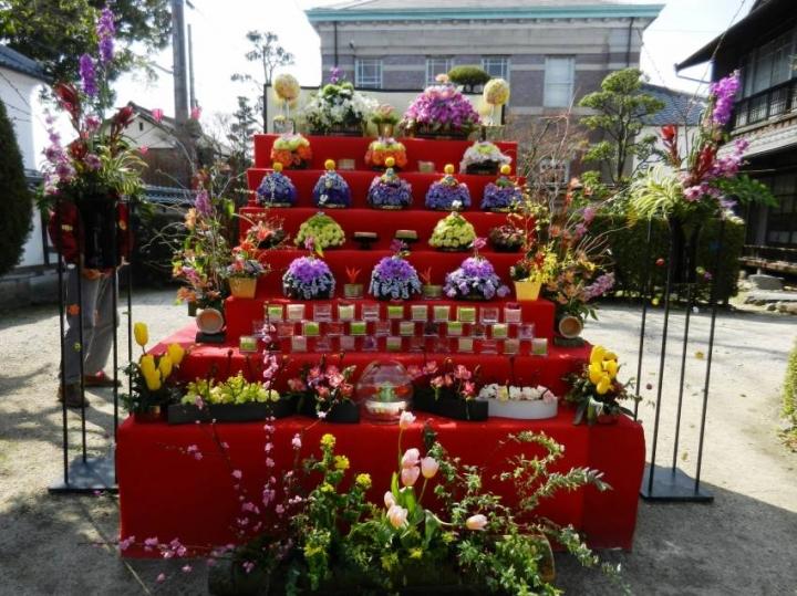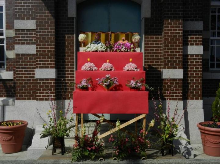 生け花を使った装飾がたくさんあり、どれも春らしくて素敵。