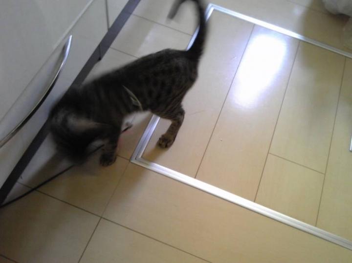 にゃんブルー!(もちゃこさん家のラテ君)敵はどこから攻めてくるかわからないわ!家の中をすみずみまで調査よ!