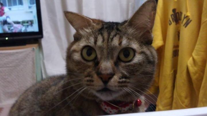 ちぃもおぺらも 走り回ることなく キャットジムから 私を見下ろしてくれています(^^)