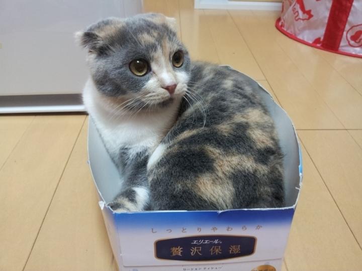 帰宅したらあんこちゅわんが、ティッシュ箱を切ったものの中に