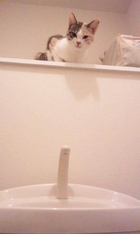 最近、、私がキッチンにいると、ごはんが入ってる棚の扉前に座って