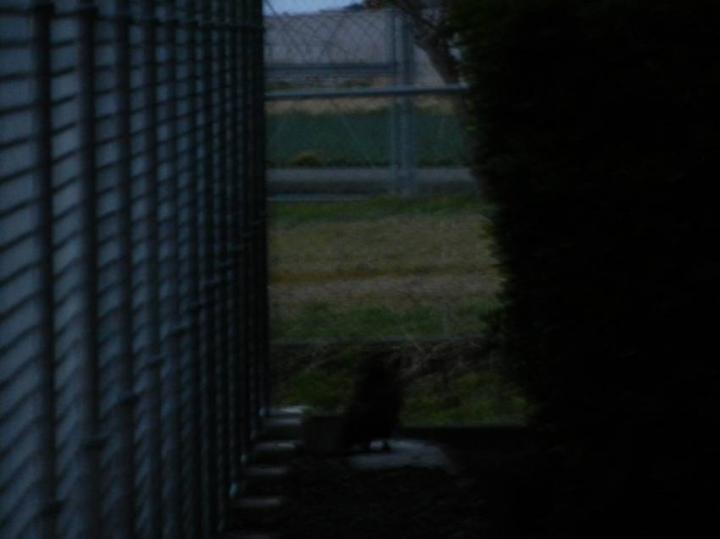 道路に出て、ふと前を見ると、黒っぽい生き物が30m先に居た。