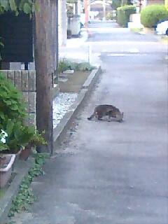 仕事に行こうと自転車で横道に入ったら、こっち見て猫が硬直してた。