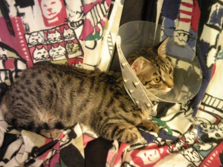 抜糸まで、ちょっと我慢してもらいます、、、、。
