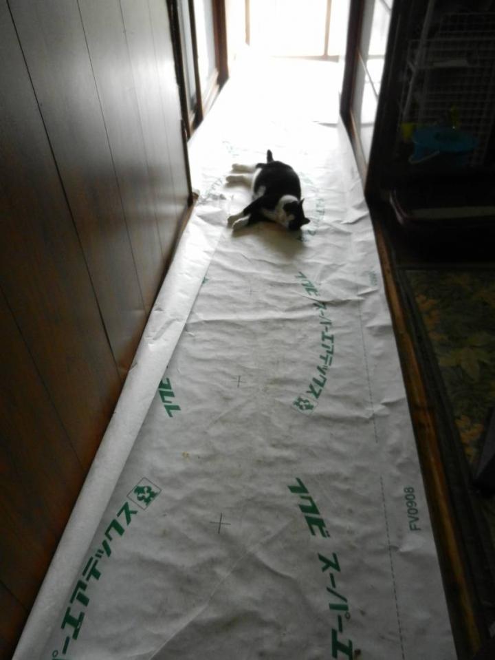 工事が済んで、部屋を出ると、おじさん達が靴で上がるために敷かれた