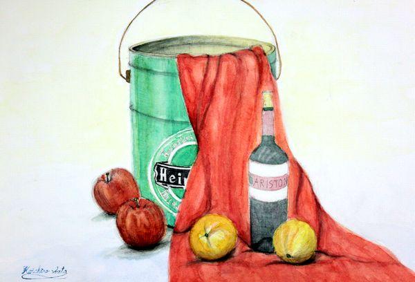 この絵は、当初は淡彩なはずでしたが、まるで水彩になりました。