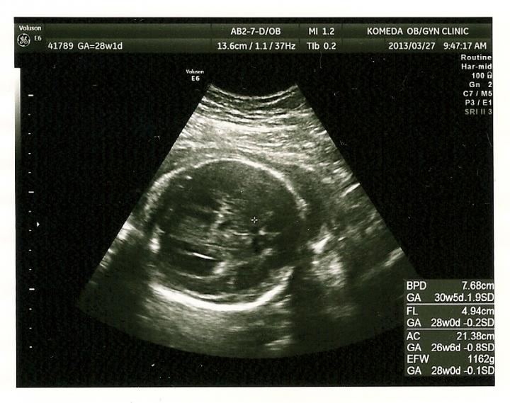 しっかり逆子もなおっており、赤ちゃんの体重も 1162g