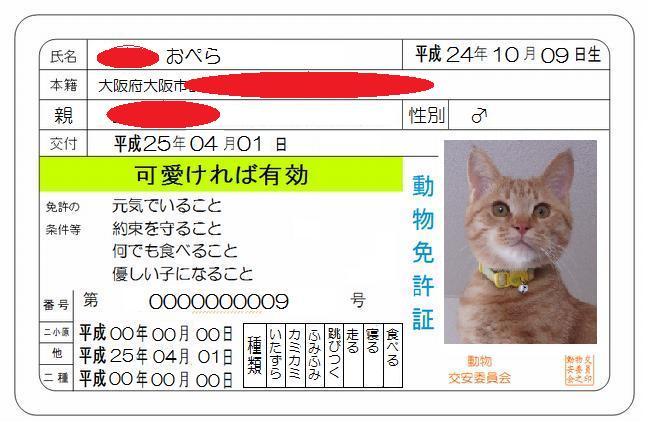 それより 私の家族は 猫ちゃん免許を作ったりして 遊んでいます(^^)