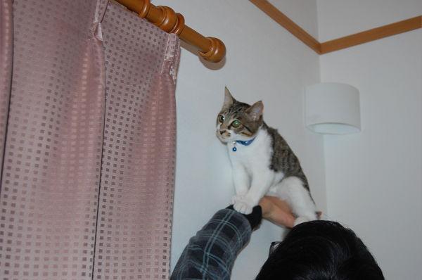 カーテンレールに登ったら、なんとか頑張れば登れてしまう高さにあります。