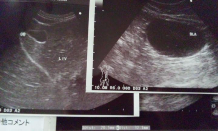 実は膀胱に何かが写っていたんですが、後日検尿していただいたところ問題なしとのことでした。