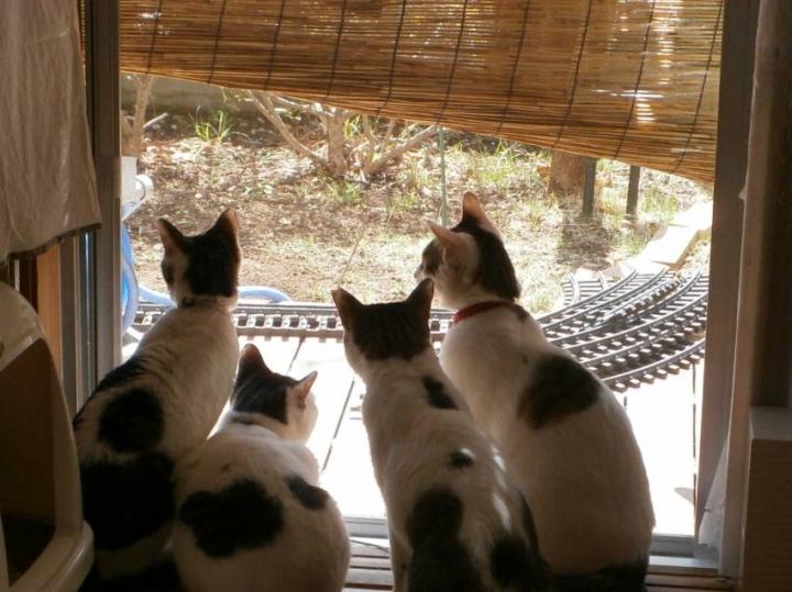 右から2番目が細オカアサンです。子猫も大きくなり母猫とあまり変わらなくなってきました。
