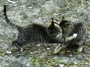 毎回、散歩はチビニャルニャルに邪魔される。