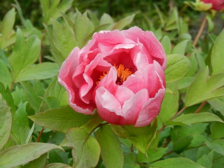 牡丹の花は雄しべをみせて、風にゆらゆら。