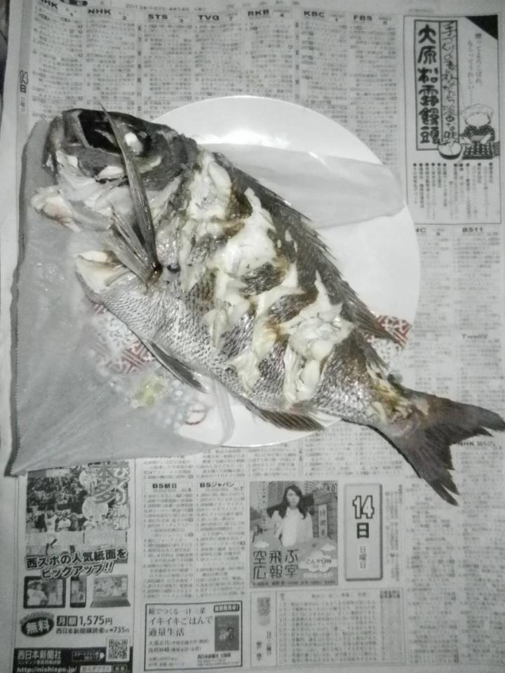 用務員「鯛、釣ったど~~~♪四尾も釣った。でも、持ち帰るのは一尾だけ。」