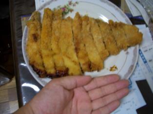 とんかつ定食にはS(シングル)とWがあり、Wはこの大きさのカツが二枚きます。