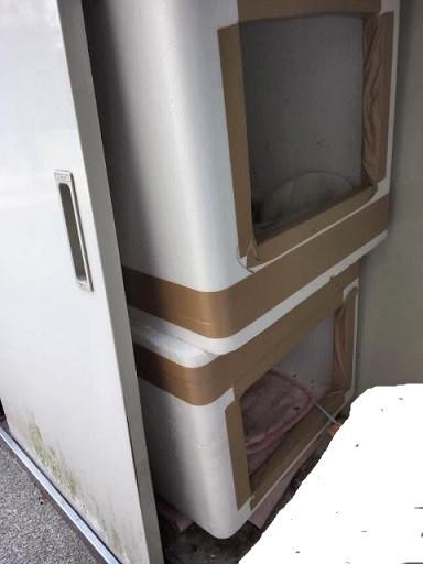 写真撮影のために戸を全開しましたが、普段は10センチ位だけ開けています。なので、雨風はバッチリしのげます!冬は寝床にカイロを敷き詰めています!冷房はありませんが、暖房完備です(笑)