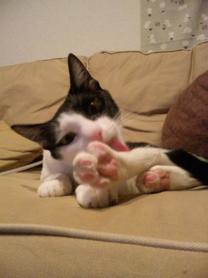 押し入れにある紙袋、段ボール何でも噛んで食べてしまうので気を付けてます。私の手も痛々しい(泣)でも、痛いっていうとやめるんだけど、やんちゃで甘えん坊な男の子になりそうです。