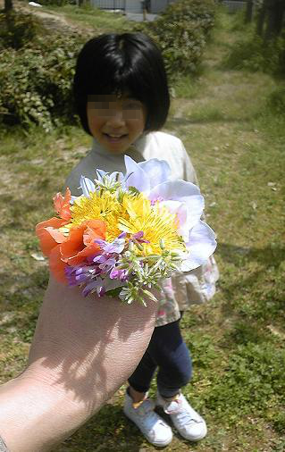「なあ~ねぇねぇ、お花の冠作れる??かあちゃん、できへんかってん・・・」
