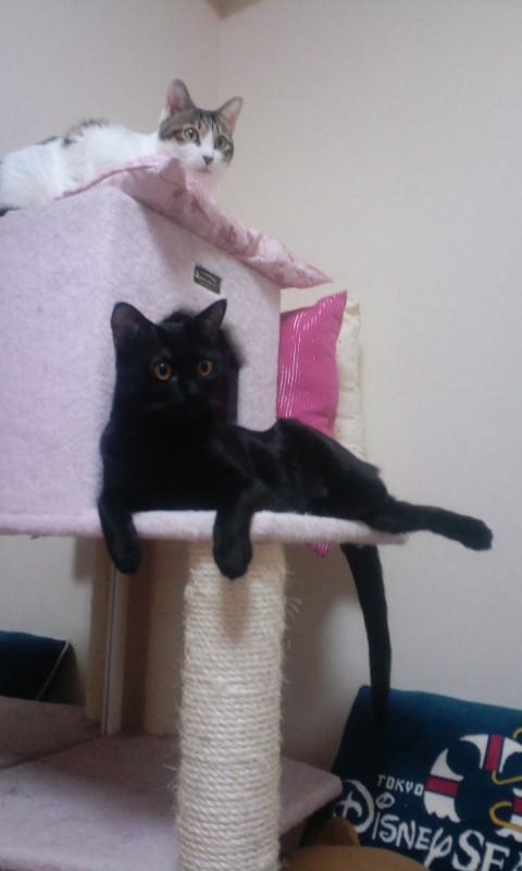 ちょっかいをかけて、遊んでもらっているモコ(黒)