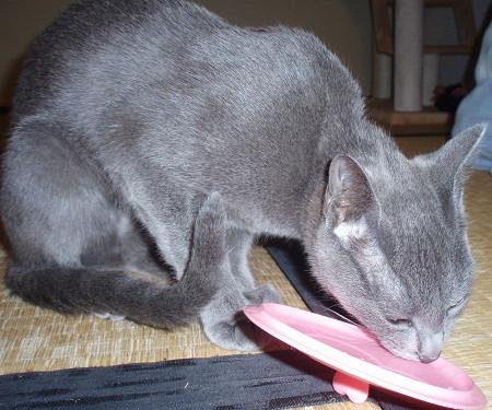 キキの食べ残しにフタをしておいたら、フタを銜えて猛ダッシュ!!