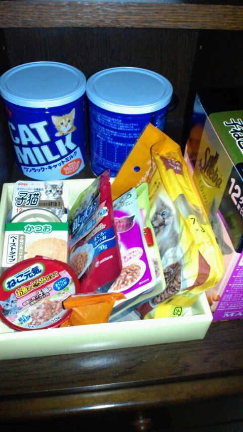 置き水、置き餌もしている状態なのにお腹が空けばにゃーにゃー泣きながらやって来る子達…(主につららとあられ)もう少しミルクが必要みたいです。