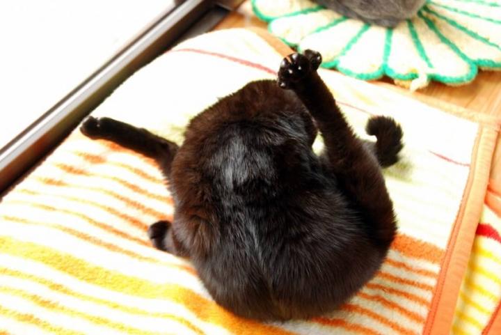 彼はたいてい、上に大きく振りかざしながら歩いています。