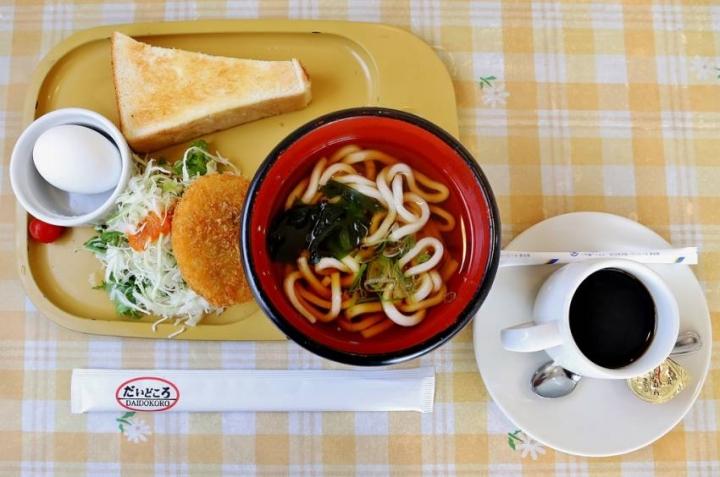 サラダ・トースト・コロッケ・ゆで卵・ミニうどん・コーヒー(ホット・アイス)