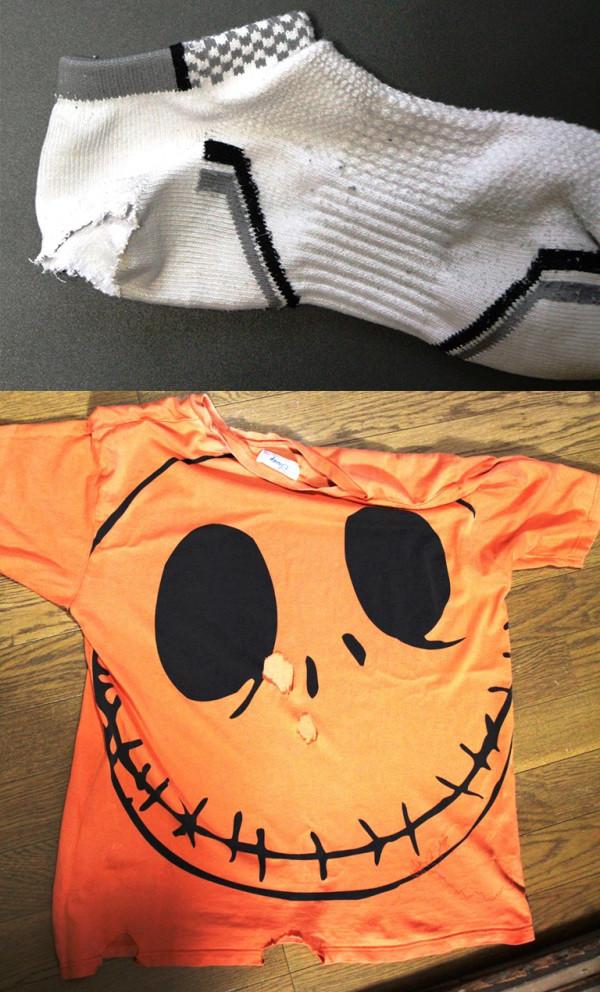 おとんの靴下と長男のTシャツ見事な穴が一杯~ (ー_ー)!!