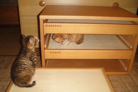 まだ小さい四匹にはちょうどいい隠れ家になってます。