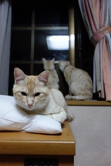 真っ暗になっても・・・窓の外が気になるタマ&ミイ♪
