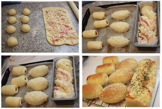 成形して水にくぐらせた後、全面にパン粉をまぶし2次発酵させ、焼く直前に