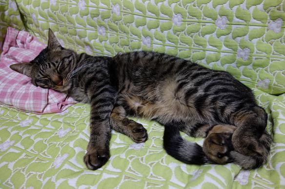 もう寒くないから丸まって寝ることも少なくなったんやな~~♪