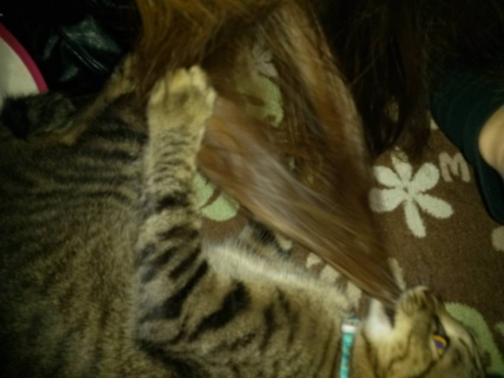 ゴンタはアタシの髪の毛で遊んでくれます(^_^;)