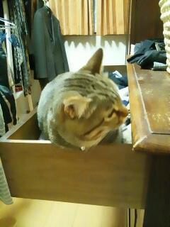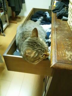 引き出しの中で少しウトウトして、そのあとは下駄箱を開けようとしていた。