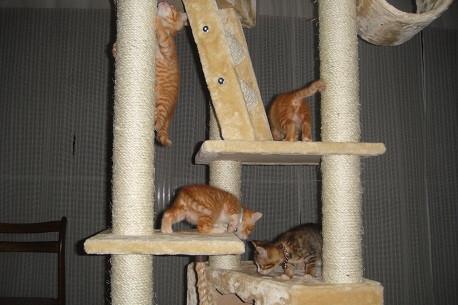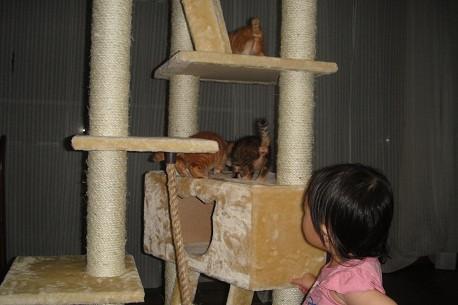 つららが一匹先にヒョイヒョイ登って遊んでいましたが、最後は降りられなくなり「みゃーみゃー」と…