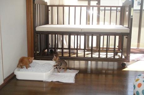 二匹はベビーベッド(もとい猫ベッド)の下で追いかけっこばかりしていたので写真が余り撮れませんでした゚(゚´Д`゚)゚
