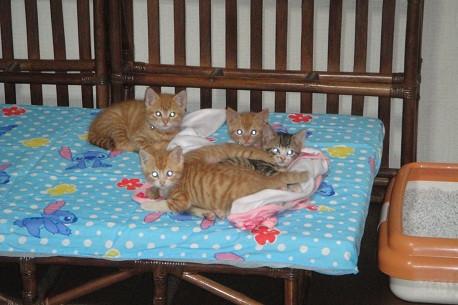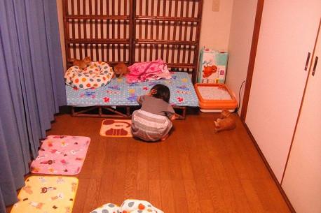 ベビーベッドを私たちの寝室に移動させ、四匹の新しい寝床を作り。
