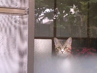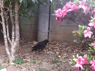 親も庭の上を何度も旋回して、鳴いて子を呼んでます。