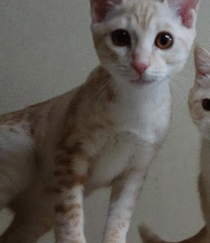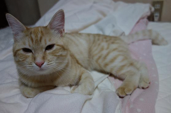 やや丸顔、顔全体にうっすら茶色の縞模様。