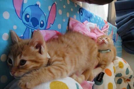 少ししんみりした話題になってしまったので、今日予防接種あとの四匹の寝顔を…(ノ∀`)