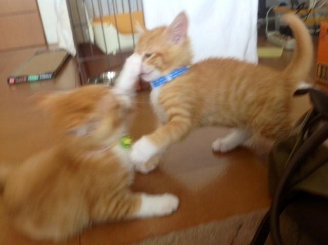 ハルくん!アキくんに、猫パンチ!! 痛いニャー~!!!!