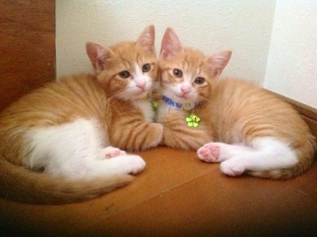 階段遊びに疲れ、兄弟仲良く、踊り場で、寄り添ってます。