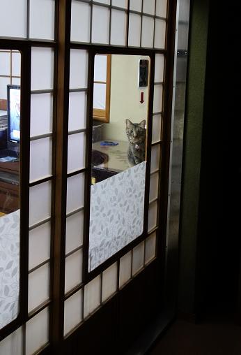 ガラスの下半分にシートを張ってるのは、銀ちゃんがガラス越しにワンコを見下ろすと