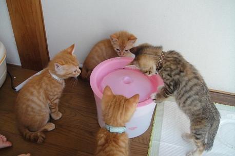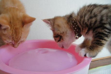 複数飼育猫用のものなので少し高さがあり…二ヶ月の子猫には飲みづらいだろうかとも思ったのですが、そんな事もないようです(^^)